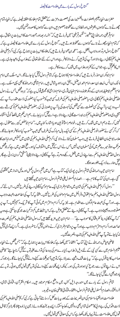 Gustakhan E Rasool(saw) K Bary Mien Ulma Ummat Ka Faisla