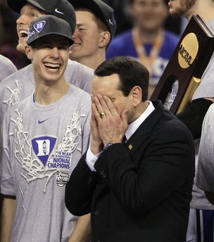 shahabi 23 Posted January 11, 2011 Duke In this April 5, 2010 file photo, Duke head coach Mike Krzyzewski is overcome with emotion after Duke's 61-59 win over Butler in the men's NCAA Final Four college basketball championship game Monday, April 5, 2010, in Indianapolis. At left is guar Jon Scheyer. Share this post Link to post Share on other sites